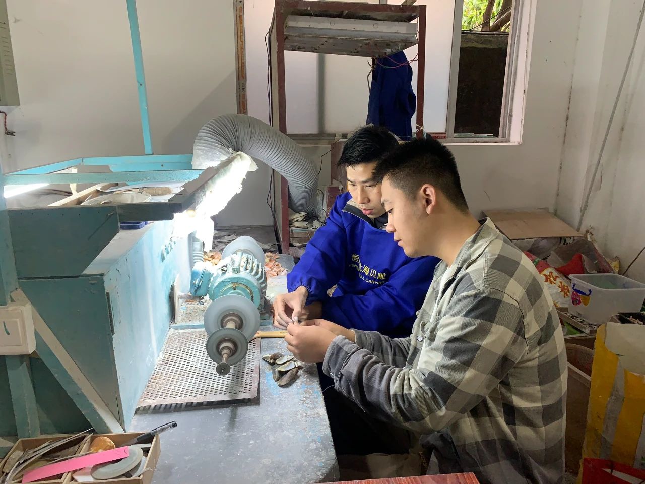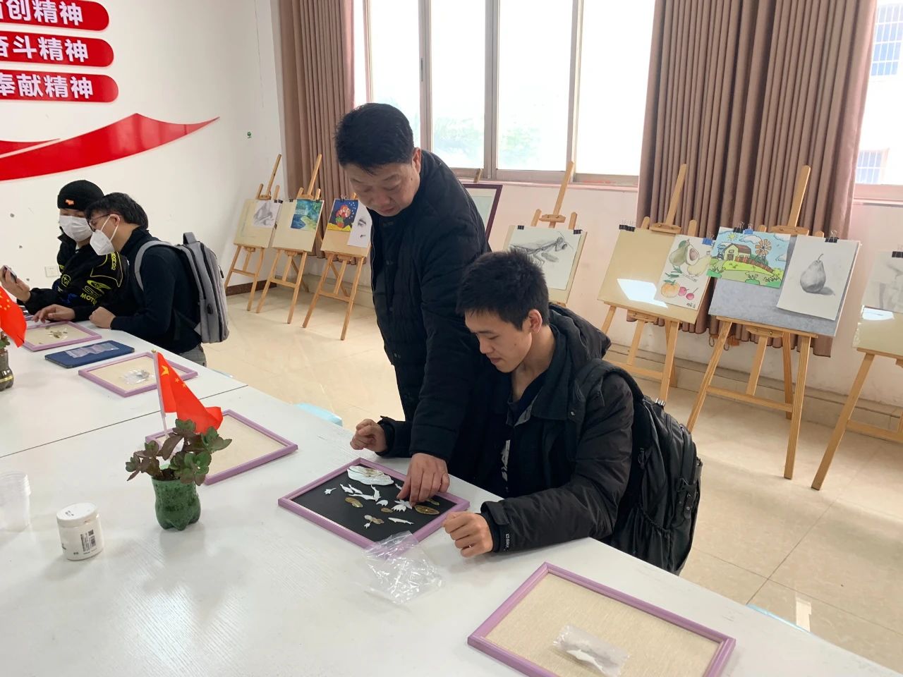 期間,北海貝雕博物館館長林雄先生還和劉斌院長、潘毅群教授從創(chuàng)作元素到制作過程,進(jìn)行了詳細(xì)、深入的溝通。 學(xué)子們除了參觀展覽和聽取講座外,還親身體驗(yàn)了制作貝雕畫的部分工藝。從材料的選擇、設(shè)計(jì)到制作,親身體驗(yàn)了這項(xiàng)古老而精湛的手工藝術(shù)。