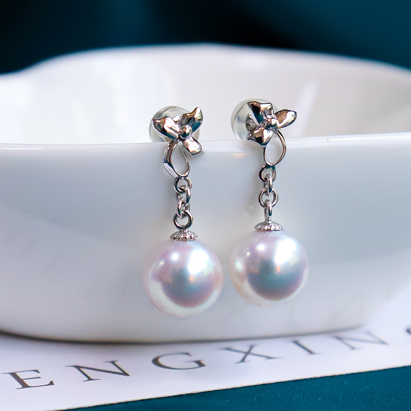 天然海水日本akoya珍珠耳線耳環(huán)女18k金長(zhǎng)款正圓耳釘