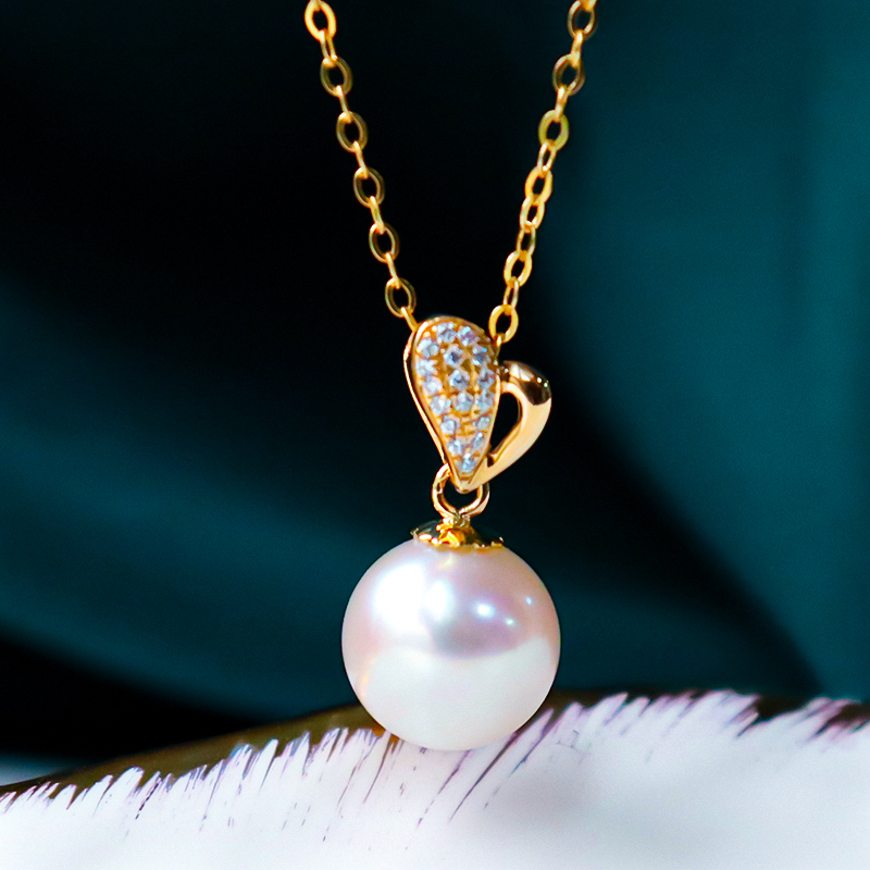 正圓強(qiáng)光Akoya海水珍珠單顆吊墜 18K金鎖骨項(xiàng)鏈時(shí)尚單品