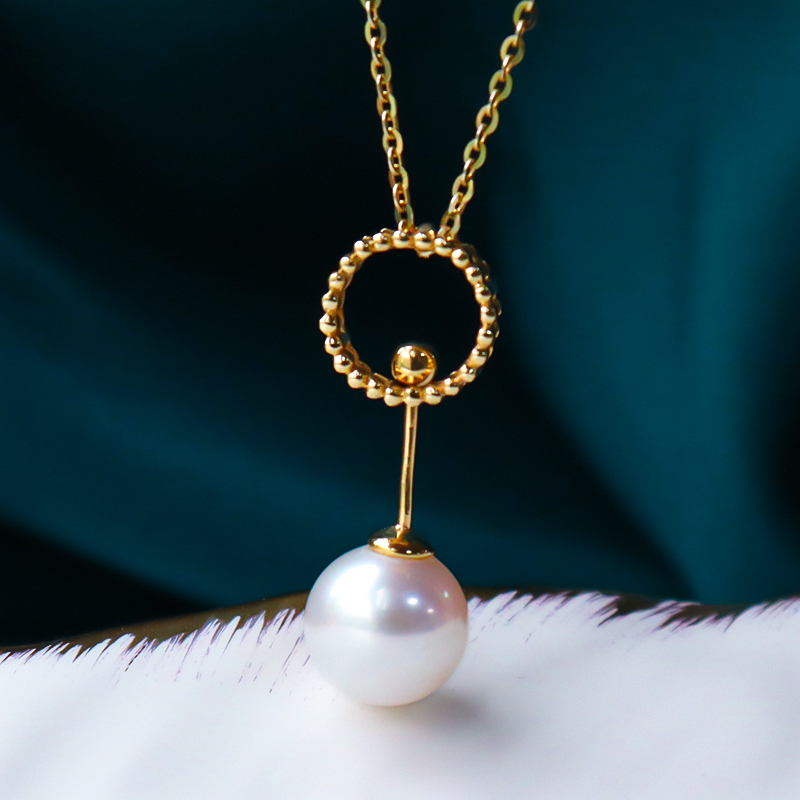AKOYA天然海水珍珠吊墜 18K金 正圓強(qiáng)光鎖骨鏈簡約吊墜