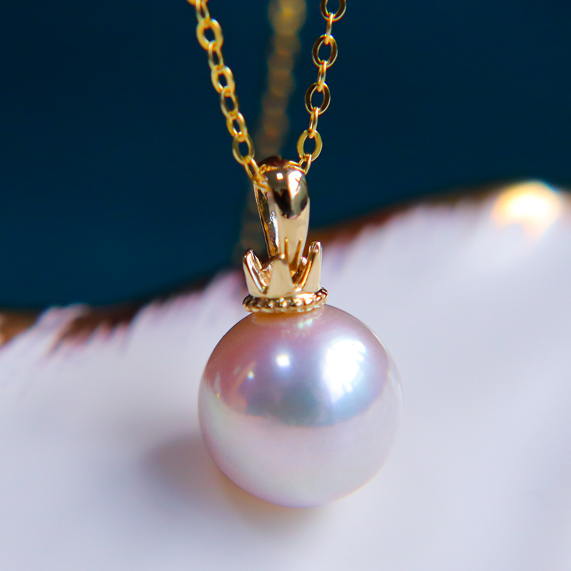 日本akoya珍珠吊墜項鏈皇冠18K金單款海水項墜鎖骨女