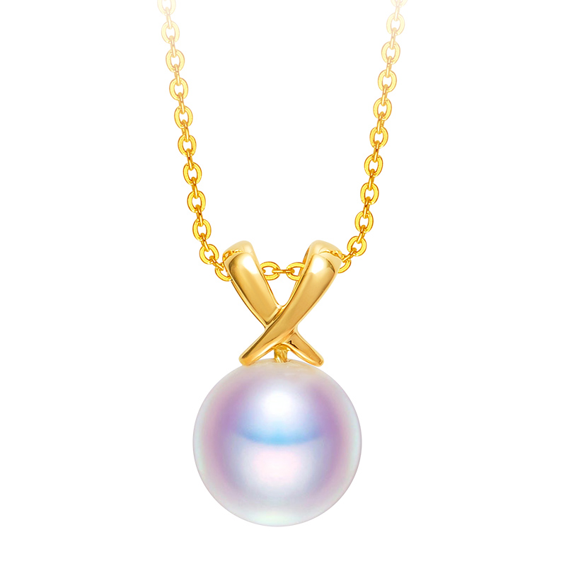 正圓強(qiáng)光Akoya海水珍珠單顆吊墜 18K金鎖骨項(xiàng)鏈時(shí)尚單品