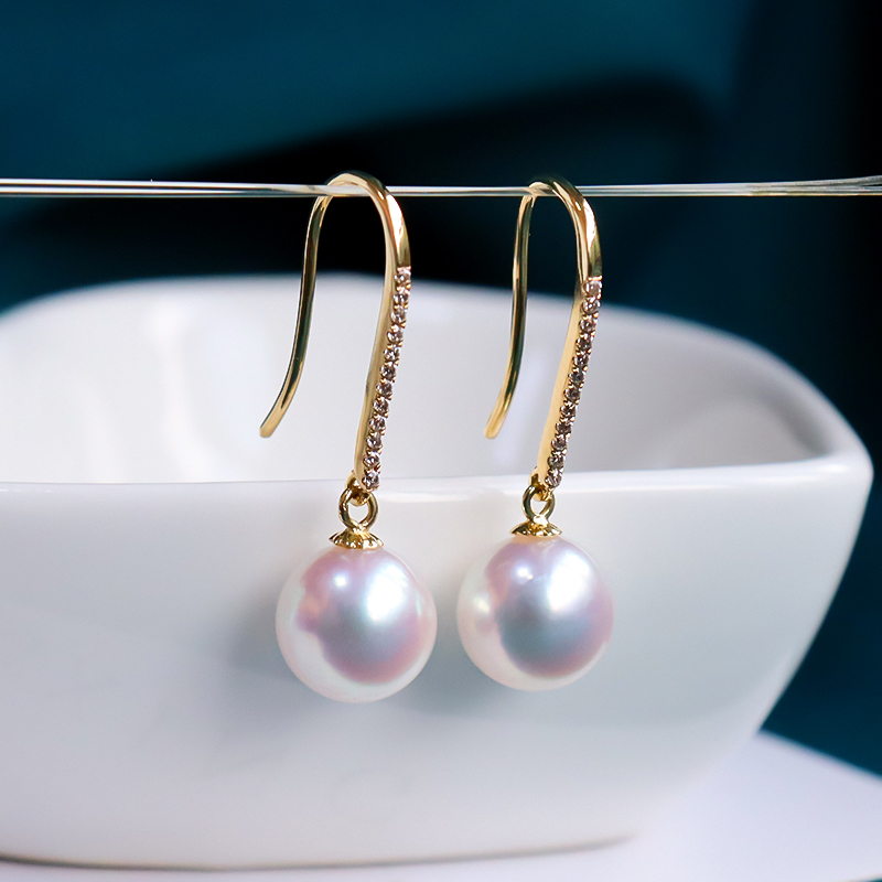 日本AKOYA海水珍珠耳環(huán) 正圓強(qiáng)光 18K黃金珍珠耳鉤